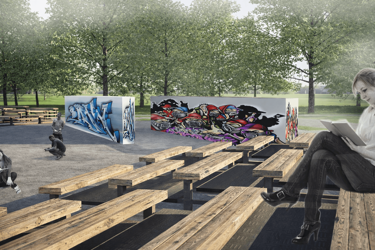 Der Entwurf basiert auf einer klaren Zonierung: naturnahe Bereiche zur Regeneration, Freizeit- und Aktivitätsräume am Wasser sowie ergänzende Nutzungen mit modularer Architektur. Besonderes Augenmerk lag auf der Wegeführung, dem Umgang mit Topografie und Wasser sowie der Einbettung in die bestehende Landschaft.